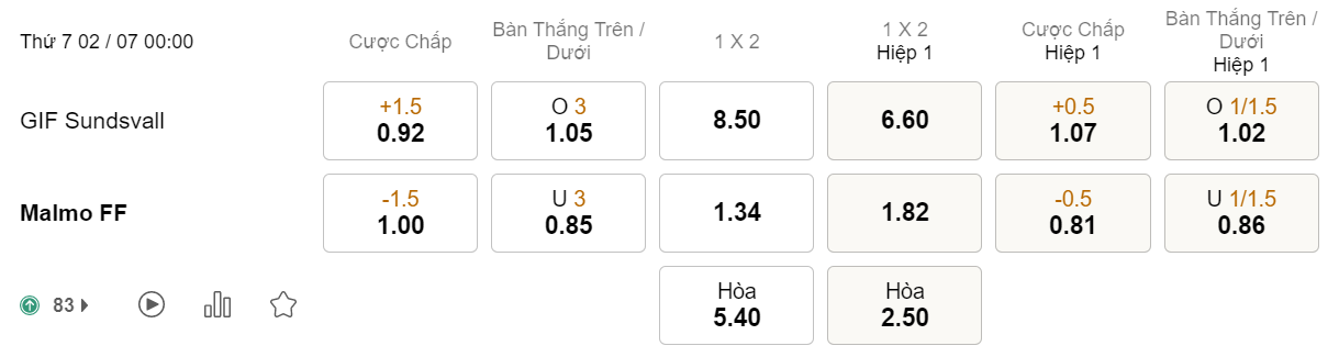 Soi kèo hiệp 1 Sundsvall vs Malmo: 1.07*0.5*0.81