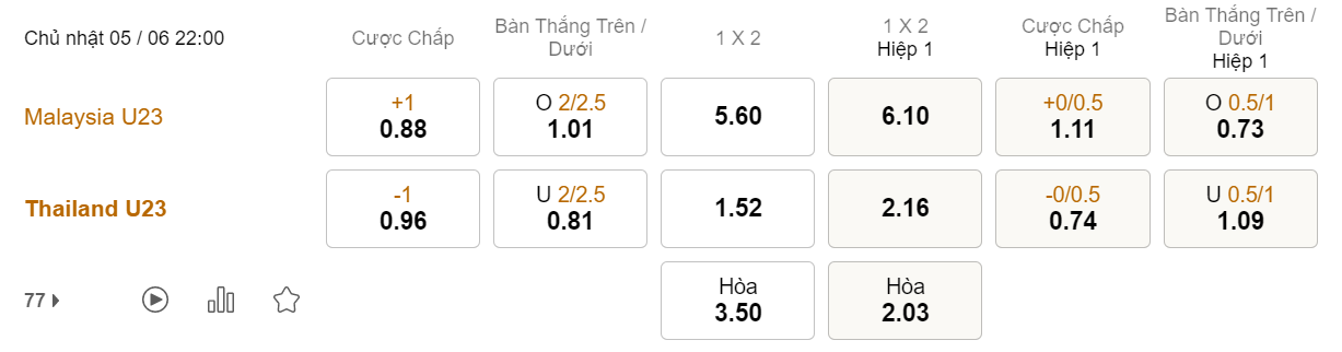 Tỉ lệ kèo U23 Malaysia vs U23 Thái Lan